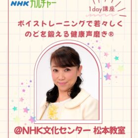 【新規開講情報!*健康声磨き @NHK文化センター松本教室 1day講座】 長野県松本市在住の皆さまに朗報です! NHK文化センター松本教室にて1da…