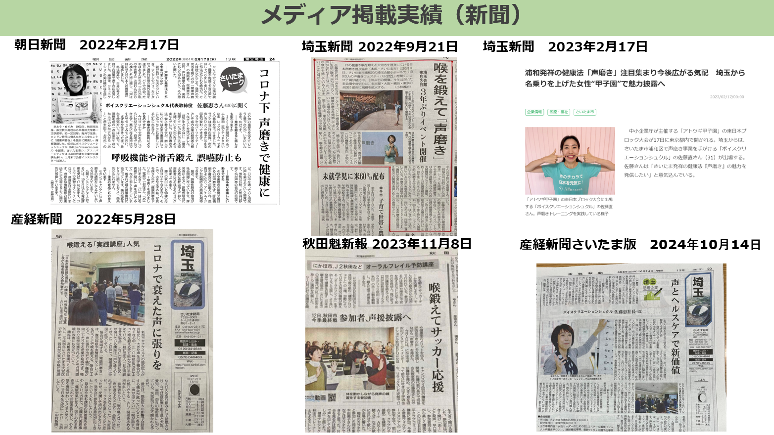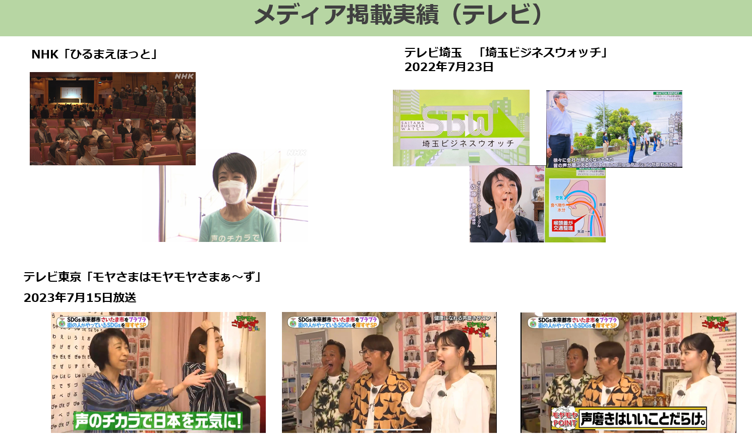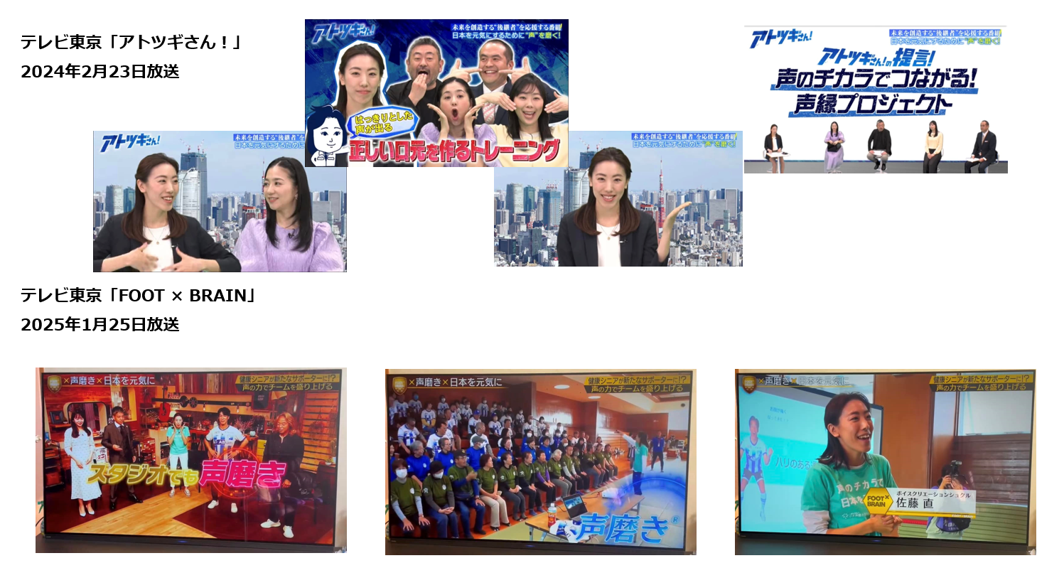 トレーニング例:呼吸法・発声法・表情筋トレーニングを通じて、「切り札声」を構築、滑舌トレーニングで好感度アップ 等