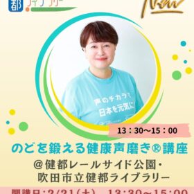 【新規開講情報!*健康声磨き @健都レールサイド公園・吹田市立健都ライブラリー】 大阪在住の皆さまに朗報です! 健康声磨きで健都レールサイド公園・吹田…