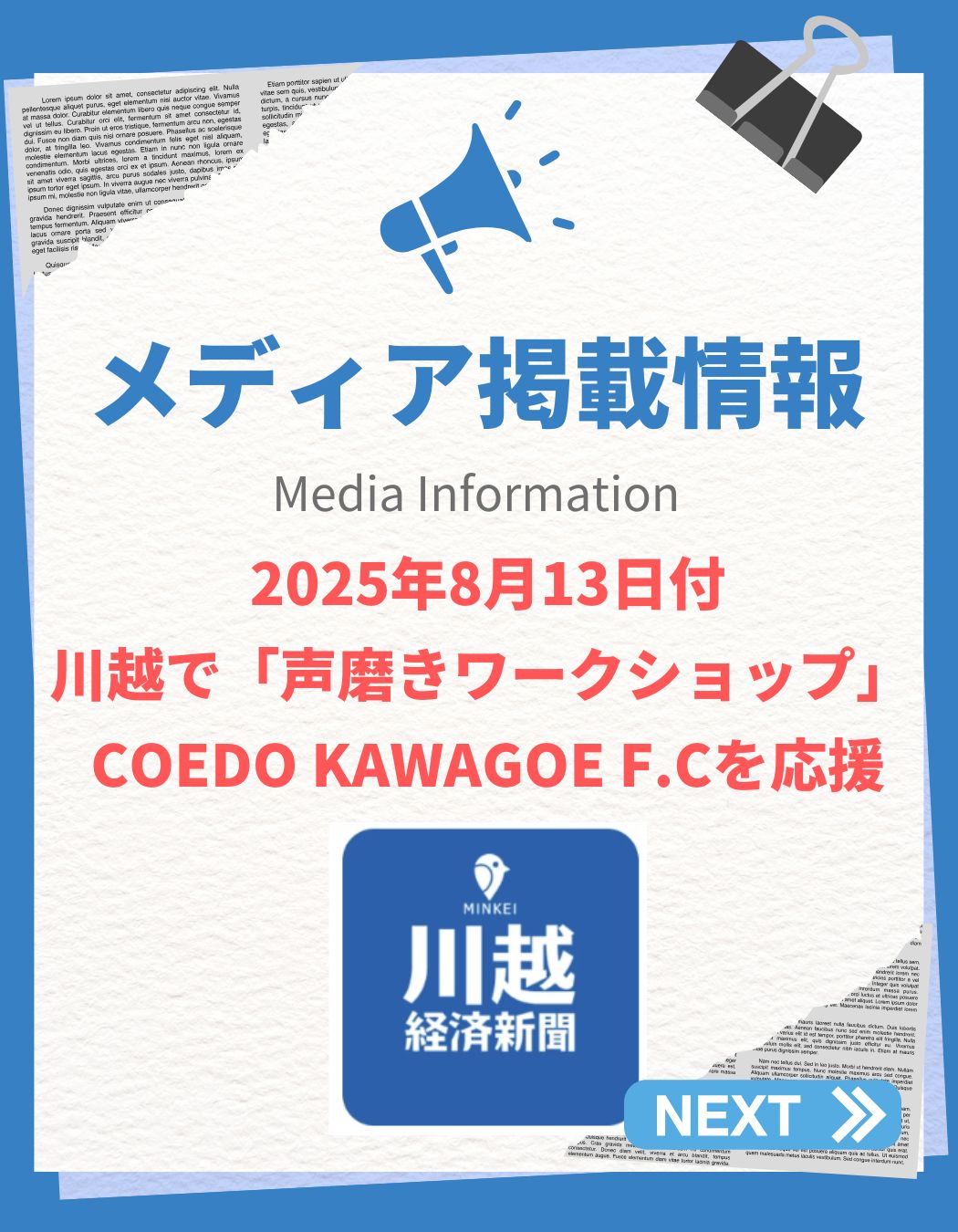 この度、川越経済新聞にて『川越で「声磨きワークショップ」 COEDO KAWAGOE F.Cを応援』