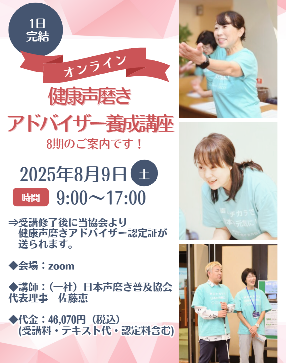 【1日完結!健康声磨きアドバイザー養成講座 8期受講生募集のお知らせ】