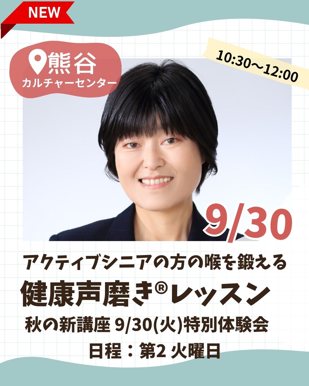 【新規開講情報!*健康声磨き @熊谷カルチャーセンター】
