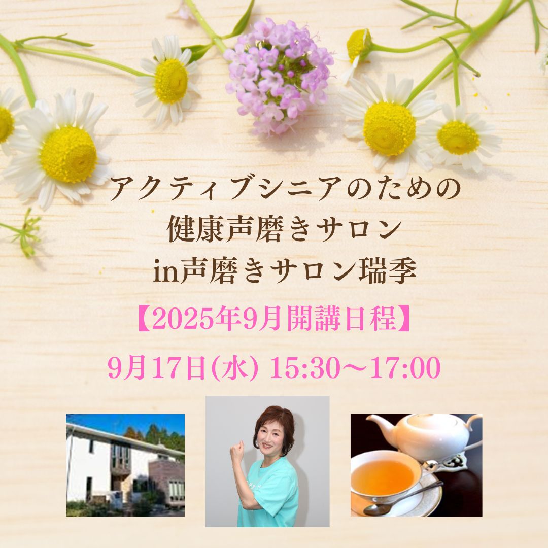 「アクティブシニアのための健康声磨きサロンin声磨きサロン瑞季」9月開催のお知らせです。