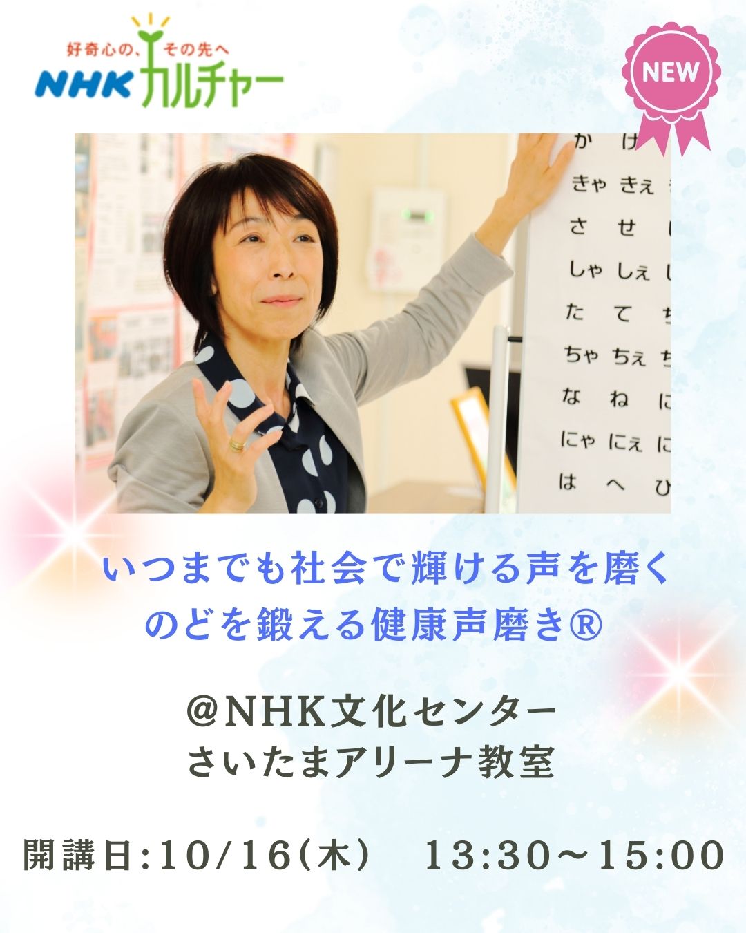 【新規開講情報!*健康声磨き @NHK文化センターさいたまアリーナ教室】