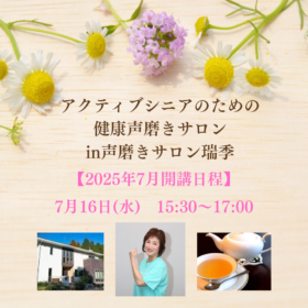 熊本県阿蘇市在住の林明子先生による 「アクティブシニアのための健康声磨きサロンin声磨きサロン瑞季」7月開催のお知らせです。 本サロンは、「いつまでも…