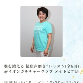 【新規開講情報!*健康声磨き @八事店】 名古屋在住の皆さまに朗報です! イオンカルチャークラブにて6月より八事店で新規開講いたします✨…