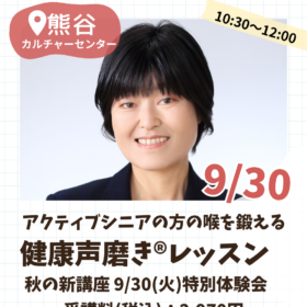 【健康声磨き®レッスン特別体験会@熊谷カルチャーセンター】 埼玉・熊谷在住の皆さまに朗報です! 9/20熊谷カルチャーセンターにて 【健康声磨き®レッ…
