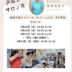 【健康声磨きサロン友(ゆう)in小松 9月開催のお知らせ】 石川県小松市在住の方に朗報です💡 声磨きインストラクターの島田裕美子生によ…