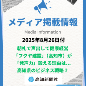 【メディア掲載情報*高知新聞に掲載されました!】 この度、高知新聞にて 『朝礼で声出して健康経営 「フクヤ建設」(高知市)が「発声力」鍛える理由は&#…
