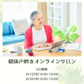 【健康声磨きオンラインサロン 9月開催日程のご案内】 アクティブシニア向け健康声磨きオンラインサロン、 9月開催日程のお知らせです💡 …