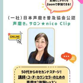 【(一社)日本声磨き普及協会公認・声磨き®サロン★nico Clip 新規開講のご案内(玉城陽子先生)】 声磨きインストラクターの玉城陽子先生による、…