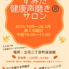 【すみだ健康声磨き®︎サロン 開講のお知らせ(加藤真梨子先生)】 (一社)日本声磨き普及協会 認定インストラクターの加藤真梨子先生による 「すみだ健康…