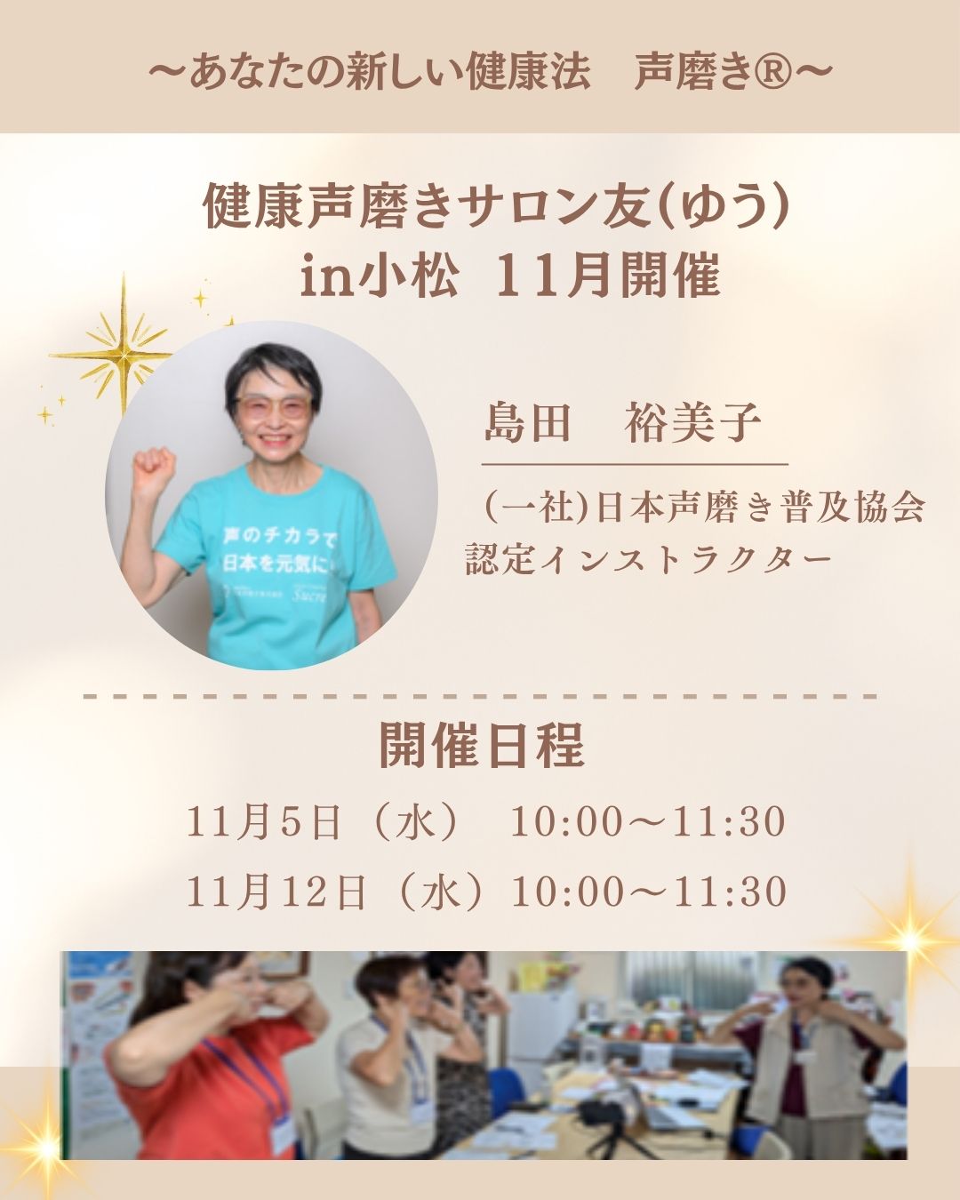 健康声磨きサロン友in小松 11月開催が決定しました🌟🌟