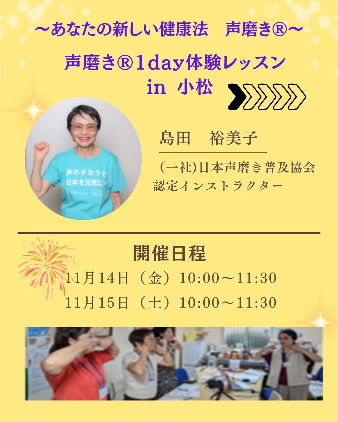 【~あなたの新しい健康法 声磨き®~ 健康声磨きサロン友(ゆう)in小松 11月のご案内】